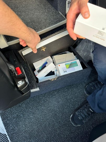 Під час огляду багажного відділення автобуса працівники митниці виявили два ноутбуки MacBook Air, чотири пари окулярів віртуальної реальності, ігрову консоль, дві акустичних системи і 34 смартфони торгових марок Google, Samsung, Xiaomi Redmi, Asus.