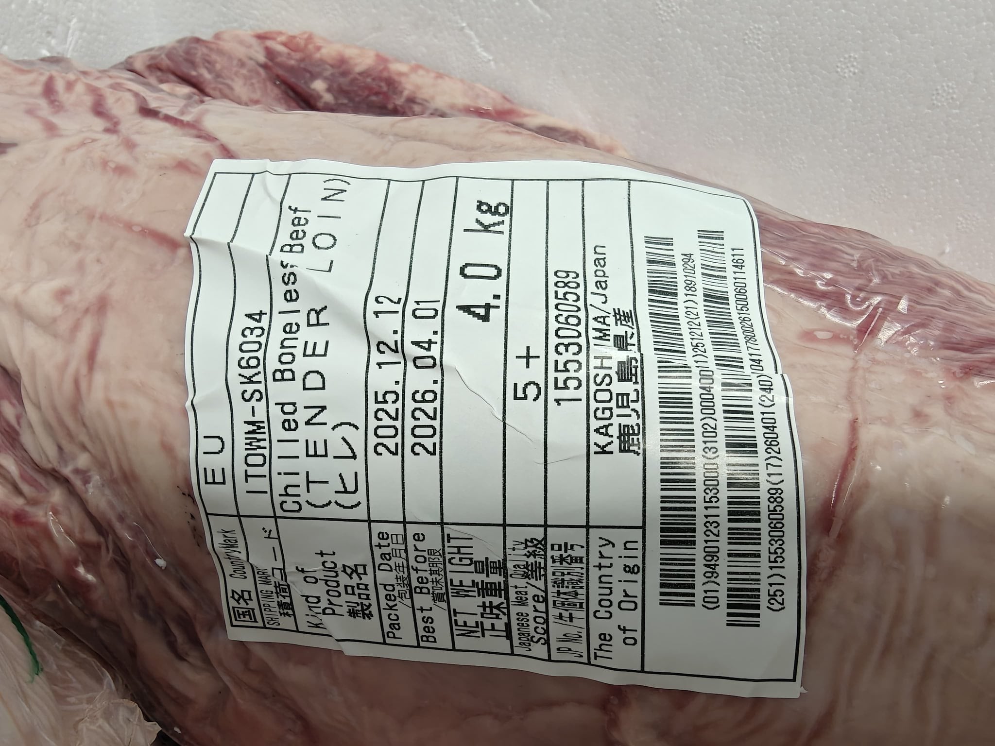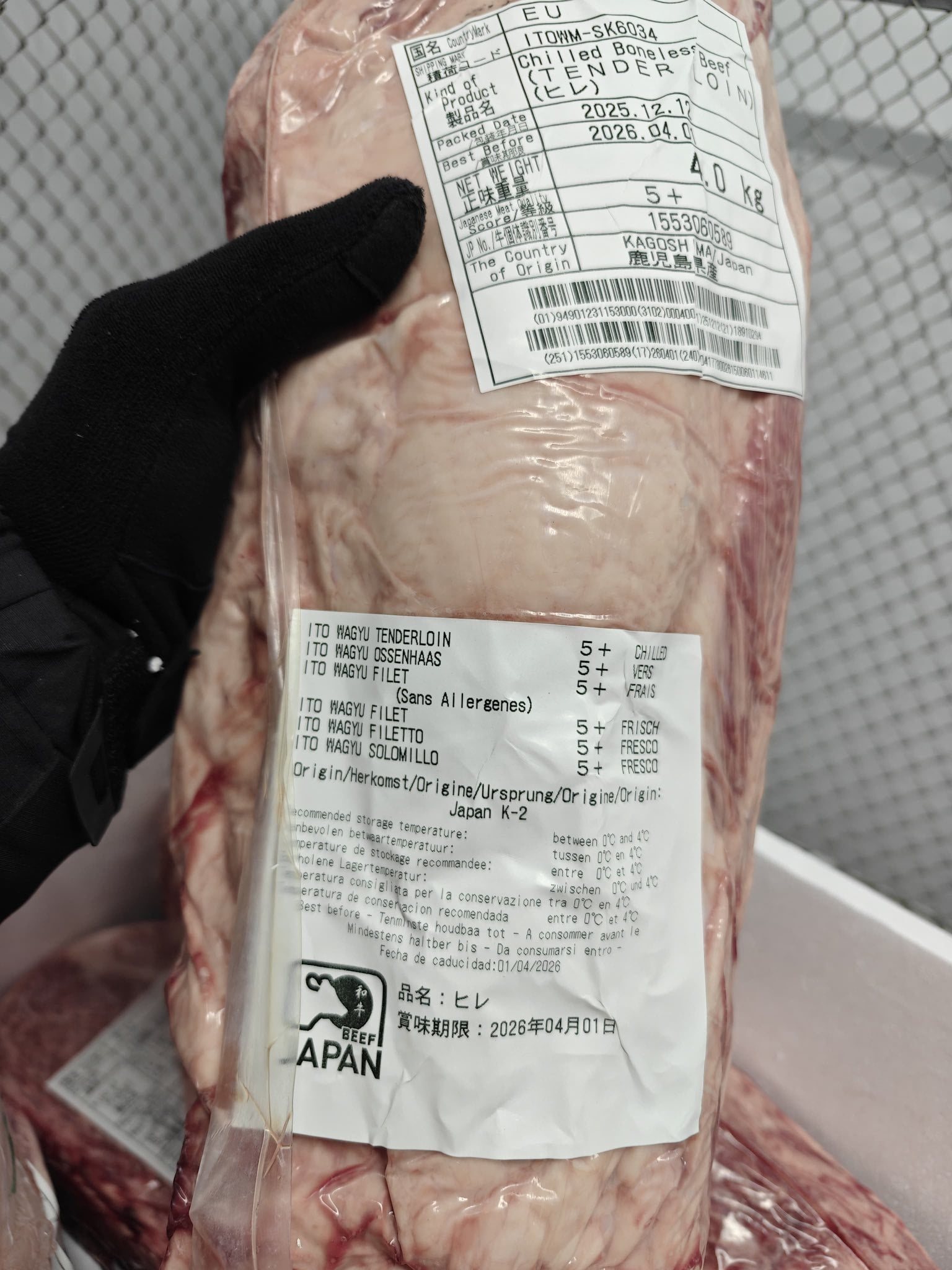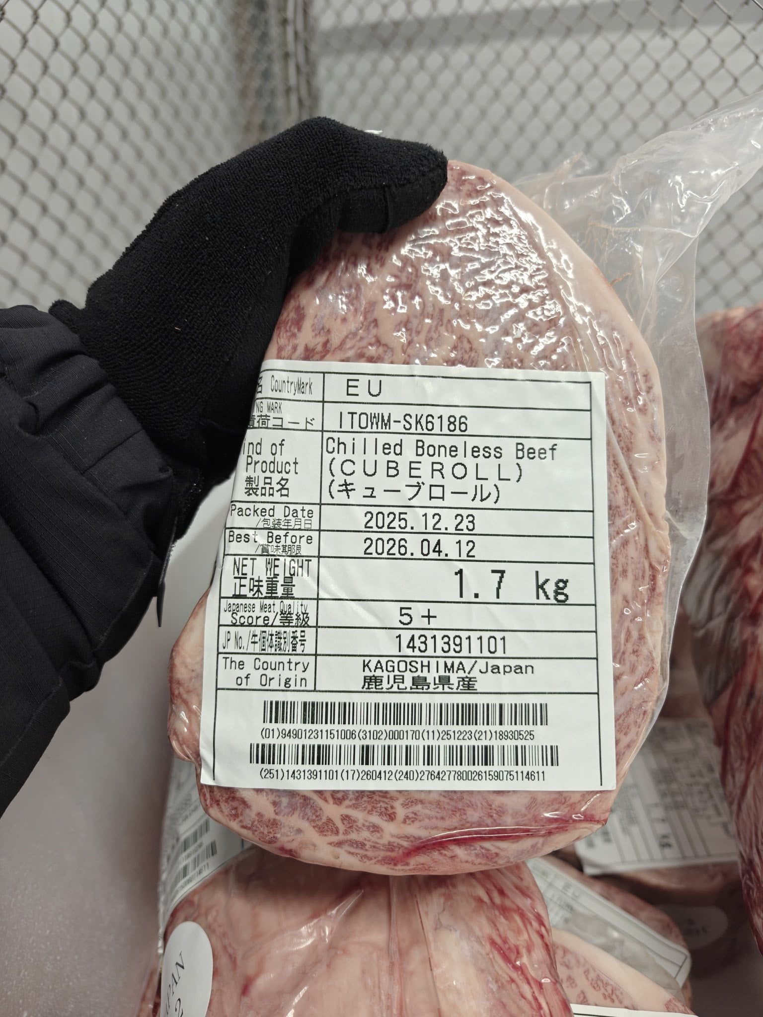 На фото, які опублікували митники, зазначена інформація про японську яловичину сорту Кобе (Wagyu) з категорією 5+, яка вказує на великий рівень мармурованості. Це найдорожча у світі мармурова яловичина, отримана від спеціальних порід корів. Вартість такого м’яса на українському ринку стартує від 12,5 тис. грн за кг.