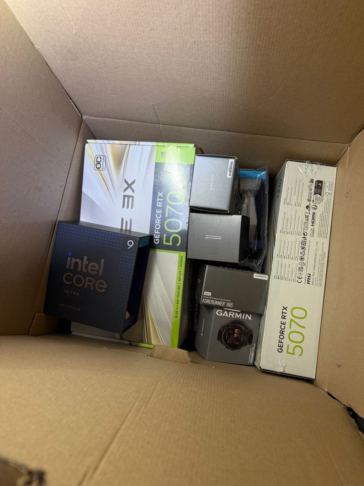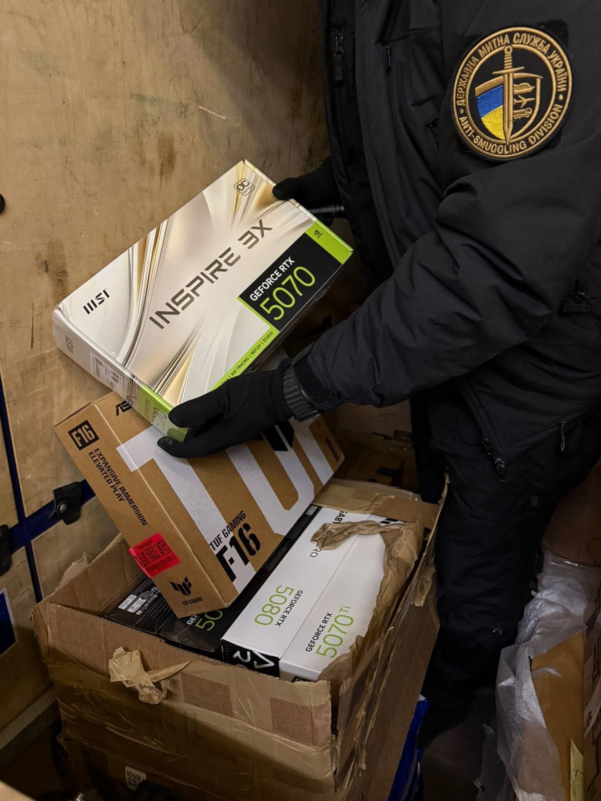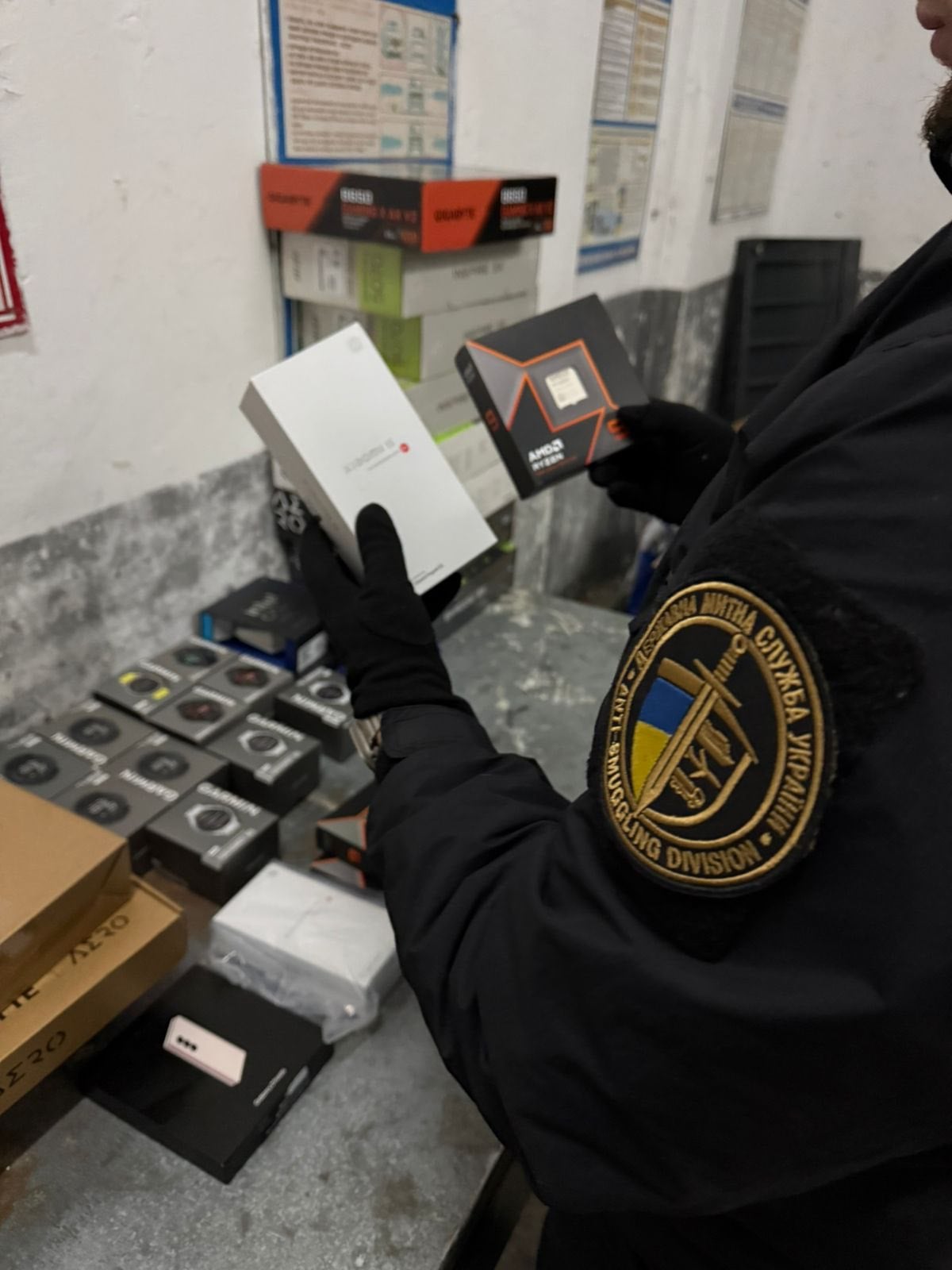 Однак під час огляду мікроавтобуса працівники митниці виявили партію нової техніки: 7 ноутбуків Asus, Acemagic, MSI, Gigabyte; 10 смарт-годинників Garmin; 10 процесорів AMD, Intel; 4 планшети Samsung; 3 телефони Xiaomi та Samsung; 7 відеокарт і материнську плату.