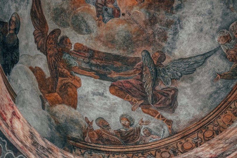 У склепінні ротонди на криниці бернардинського дворика у Львові відновили барокові розписи XVIII ст. Про це 6 листопада повідомило Бюро спадщини і показало фотографії реставрованих фресок.