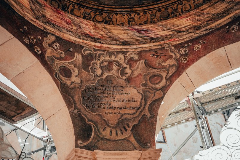 «Нещодавно ми мали унікальну можливість побачити відновлені розписи ротонди над криницею у бернардинському дворику. Реставраційні роботи, розпочаті у 2019 році, наближаються до завершення. Тож невдовзі відвідувачі зможуть помилуватися вишуканою поліхромією купола, яку відновлювали фахівці з України та Польщі – Павел Єнджейчик, Дорота Місюк-Єнджейчик, Ірина Дуткевич та Валерій Колибаба», – повідомили у Бюро спадщини.