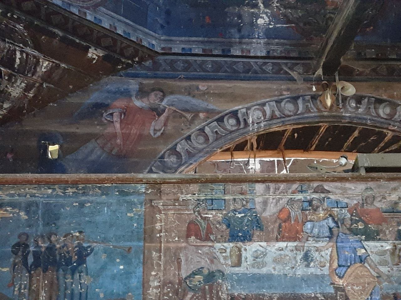 «Унікальність цих розписів в тому, що ми бачимо сцену з хорів, де у правій частині персонажі за столом в римському одязі, а поруч зображена та ж подія, де музиканти вже в одязі XIX ст., в штанах і фраку. Таке ви не знайдете в жодній іншій церкві», – зазначає художник-реставратор Олег Рішняк, який відновлюватиме розписи.