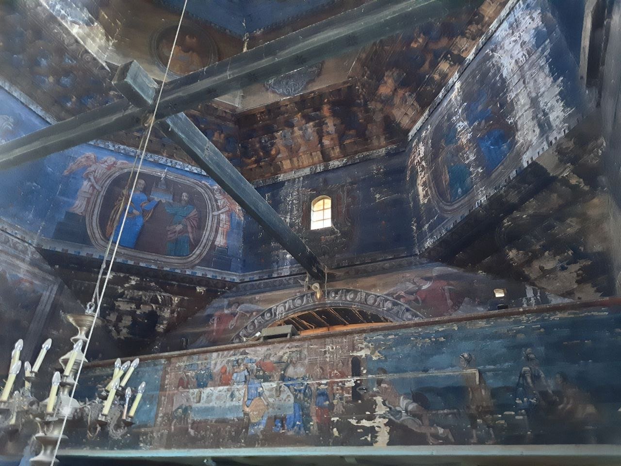 Церква була збудована в 1663 році, але в XIX ст. відбулася її реконструкція. Цим же століттям датується її стінопис. Хто автор розписів – невідомо, але реставратори сподіваються знайти якісь підказки під час відновлення. Іконостас теж, імовірно, з XIX ст. Він у кращому стані, перенесений у новішу церкву поруч.