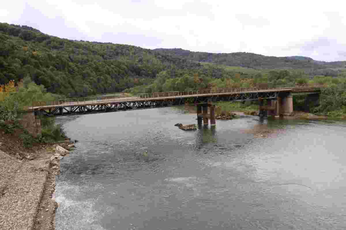 Старий міст через річку Стрий у Крушельниці, що на Сколівщині, у 2008 році зруйнували сильні повені. Мешканці сусідніх сіл залишились без автомобільного сполучення, тому за кілька місяців поруч збудували тимчасовий міст із арматури.