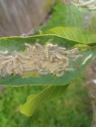 Американський білий метелик знищує листя плодових дерев та кущів (фото Держпродспоживслужби)