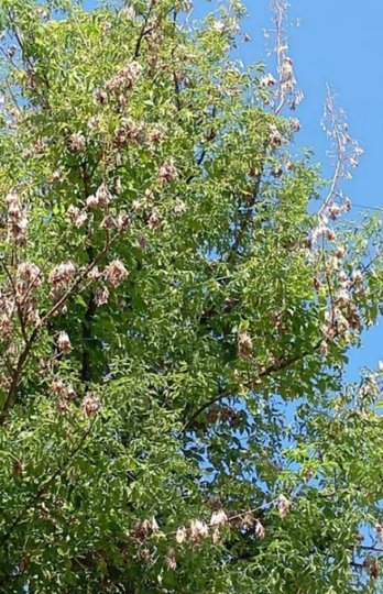- павутинні гнізда на гілках дерев;
