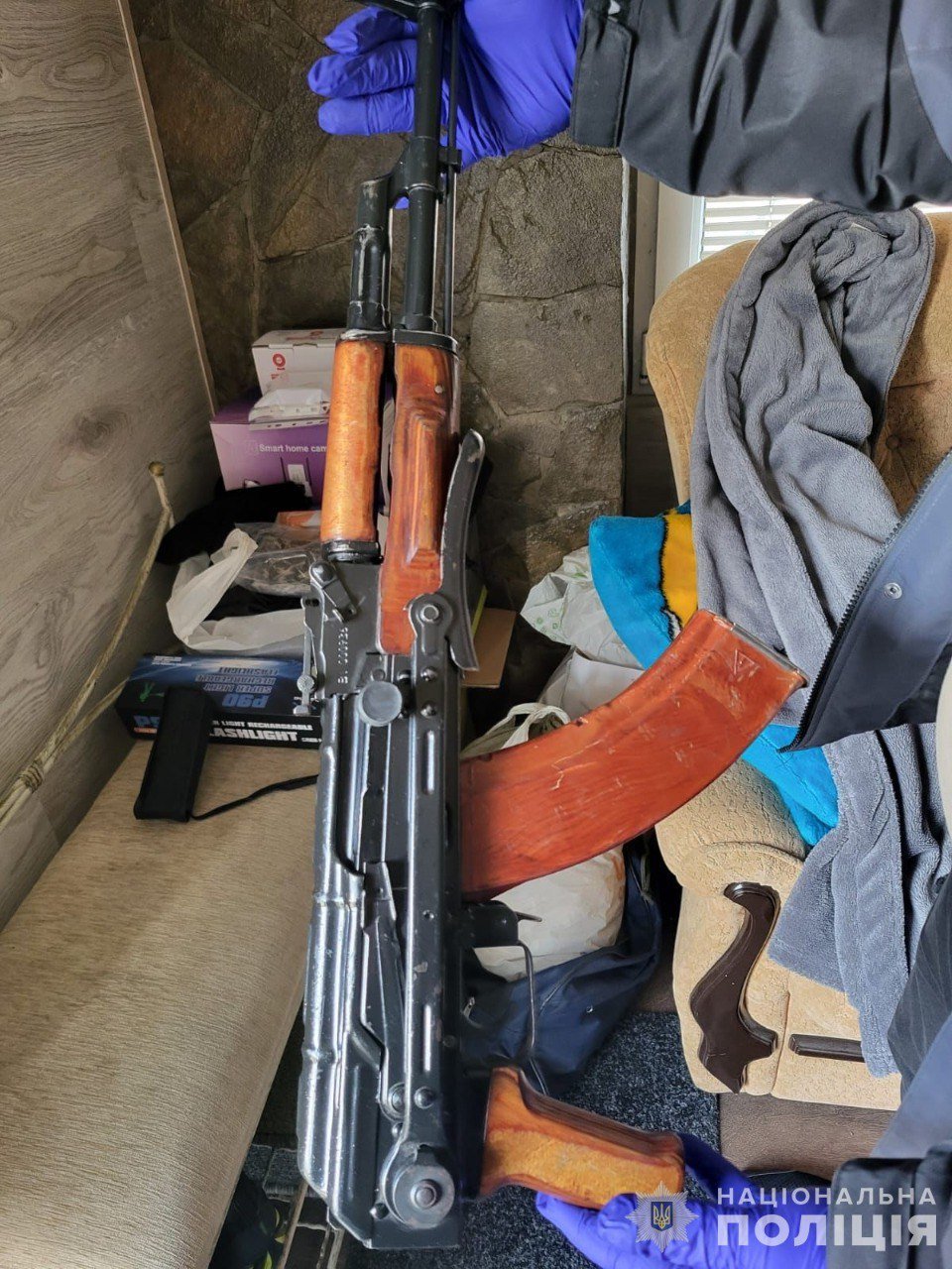 Правоохоронці розшукали його та 29 березня затримали на території Львівської області. Під час обшуків в чоловіка вилучили зброю, боєприпаси, електронні носії, мобільні телефони, а також камуфляжний одяг, гранату Ф-1 та запал.