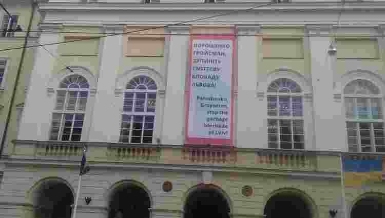 На львівській ратуші вивісили банер з вимогою припинити сміттєву блокаду