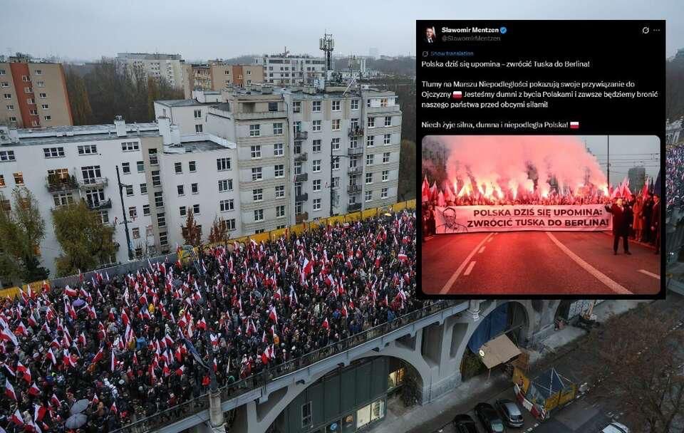Організаторами та промовцями на марші були праві та ультраправі діячі: лідер Руху Народового Кшиштоф Босак, голова Асоціації «Марш Незалежності» Бартош Малежський і керівник громадської організації «Всепольська молодь» Марцін Осовський. Всі вони говорили про «загрози з боку Європейського Союзу та Німеччини», але, як пише польський сайт Onet, жоден із них не згадав війну Росії проти України. Босак лише коротко згадав про «загрозливий Схід», але з вигуків і плакатів було зрозуміло, що йдеться передусім про Україну.