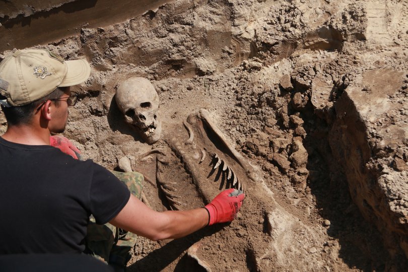 «Ви можете бачити частину останків тіл з розрізаними черепами. Їх забирали з госпіталю, судмедексперти шукали причину смерті. Ці люди поховані у спокійний повоєнний час, але як-небудь. Ми знайшли останки, які були догори ногами. Тобто в труні обличчям вниз. Чому так – ніхто не знає. Вони не самі перевернулися, а їх просто так поклали», – зазначив Ярослав Онищук.