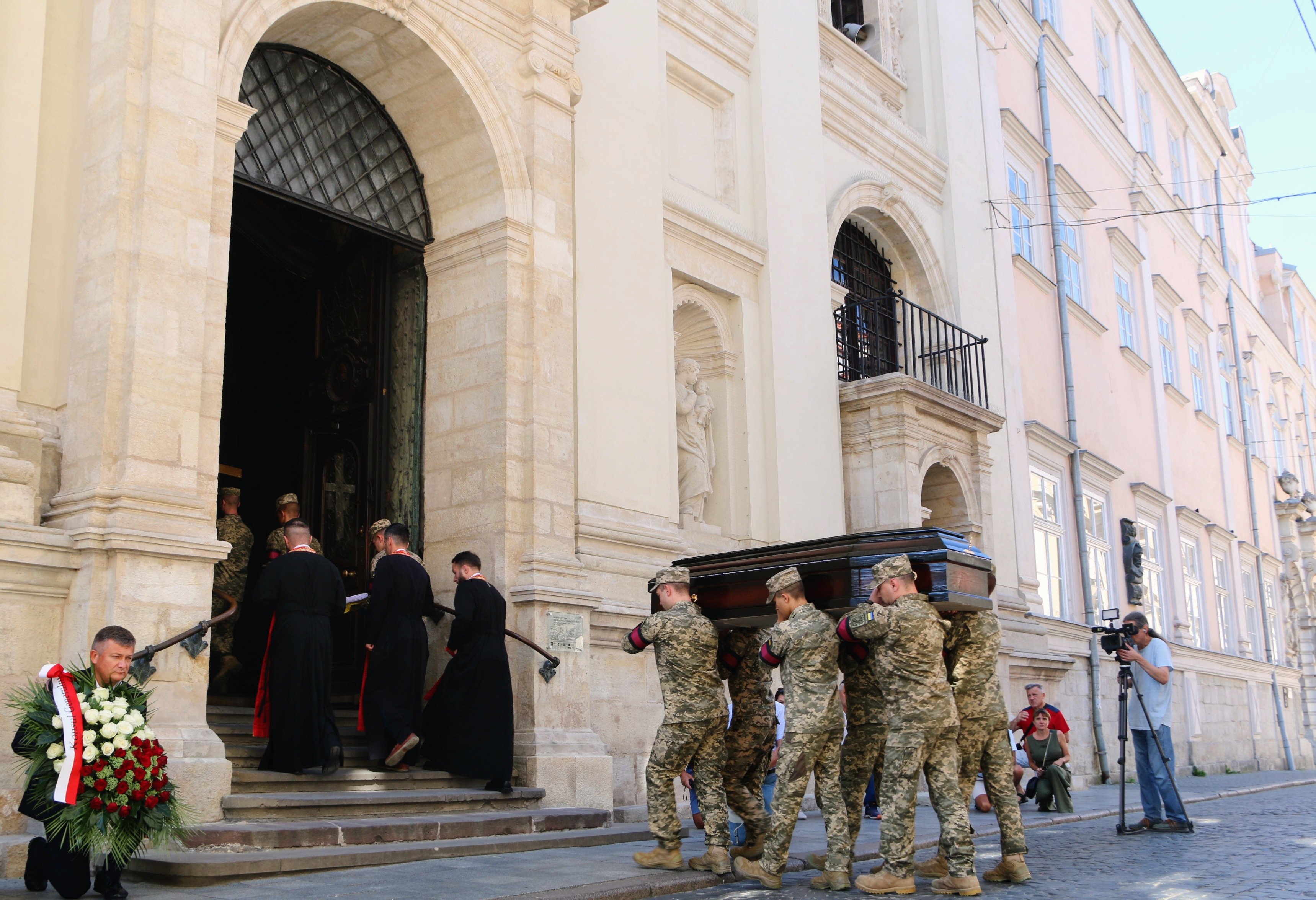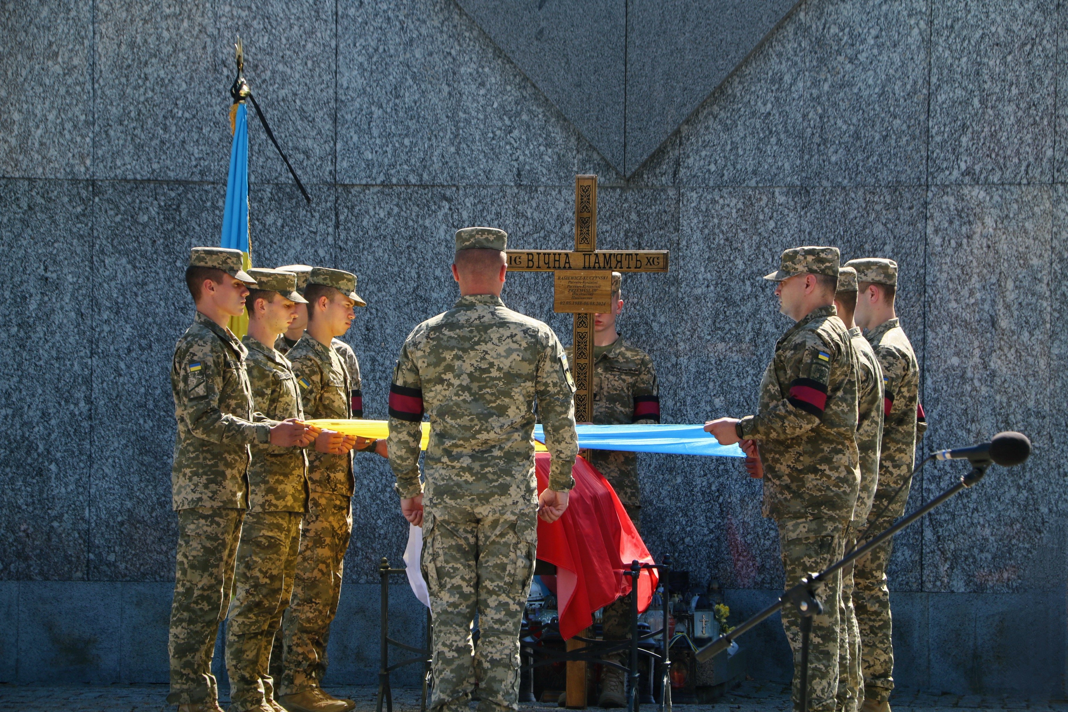 У середу, 14 серпня, у Львові попрощалися з громадянином Польщі 36-річним Пшемиславом Расевичем-Кучинським. Він захищав Україну з 2022 року й загинув 6 серпня під час виконання бойового завдання. Прощання відбулося у Гарнізонному храмі, а поховали військового, як він і заповів, на Марсовому полі. У прощанні взяли участь побратими добровольця та його рідні, пані консул Польщі у Львові Еліза Дзвонкєвіч.