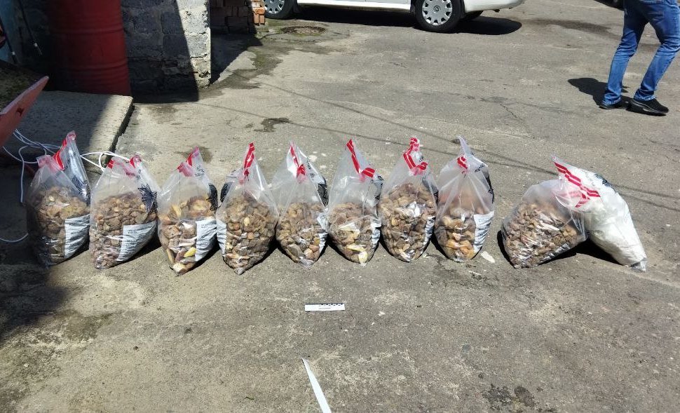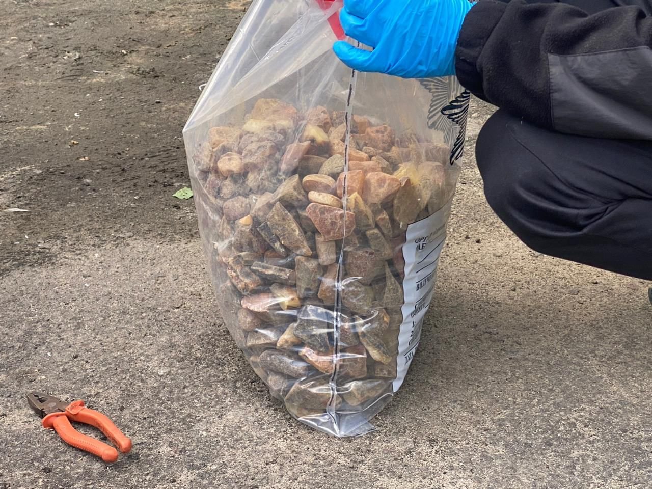 Відповідно до ухвали суду правоохоронці у вівторок, 8 серпня, провели обшук в мікроавтобусі, під час якого виявили дев'ять мішків із камінням бурштину-сирцю різної фракції загальною вагою 85 кілограмів. Вилучене каміння направлять на гемологічну експертизу.