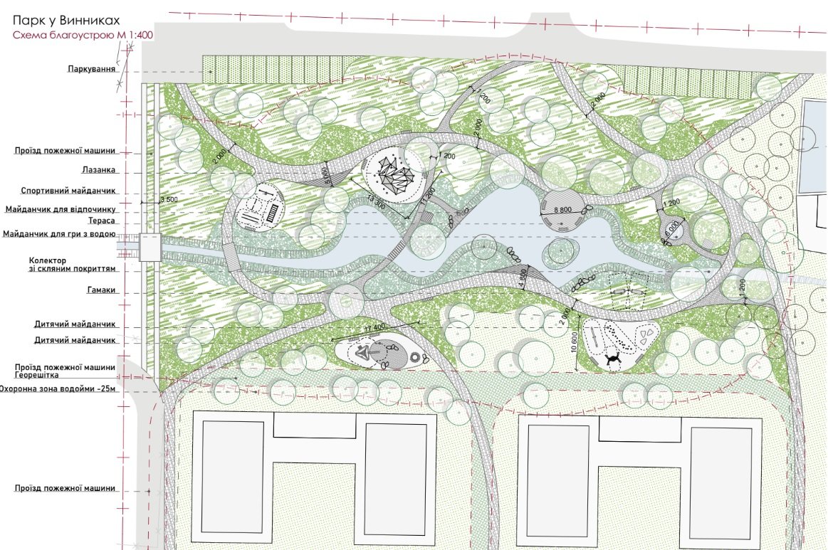 Поміж ЖК планують змінити русло річки Марунька, розширивши водойму в межах нового скверу на 0,61 га з дитячими та відпочинковими майданчиками. Два технічні озера, що розташовані в межах ділянки, пропонують перенести на північ, ближче до річки, та влаштувати річковий колектор зі скляним покриттям.