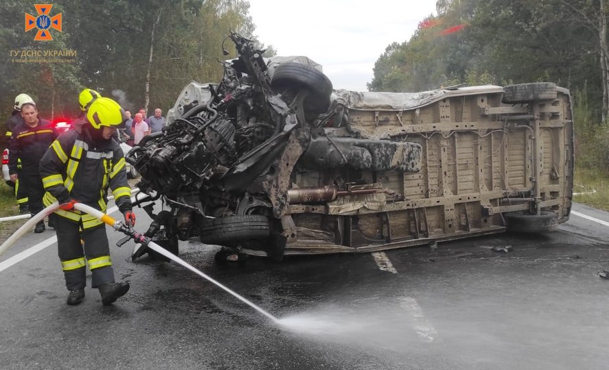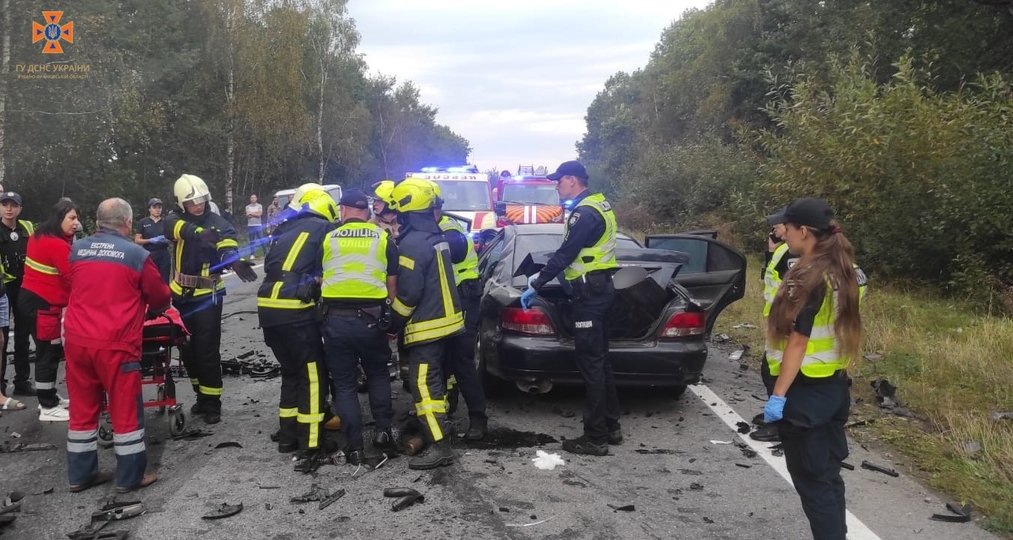 «Рятувальники деблокували двох людей, яких затисло в автомобілі, та від’єднали клеми акумуляторної батареї з двох транспортних засобів, щоб запобігти пожежі. Також змили паливо з проїжджої частини автодороги», – повідомило управління ДСНС України в Івано-Франківській області.