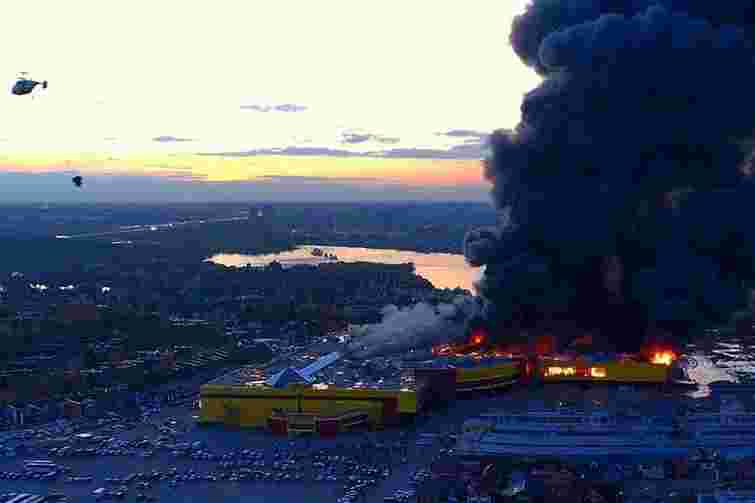 На околиці Москви спалахнув торговий центр: пожежу гасять вертольотами