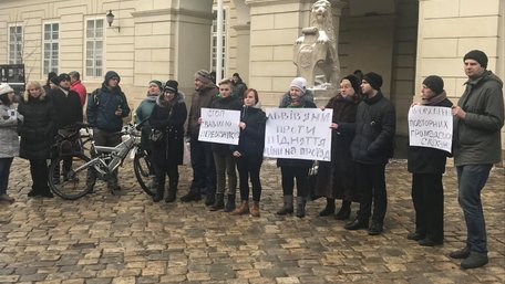 Участь у нечисельному пікеті під львівською ратушею взяли і двоє депутатів міськради