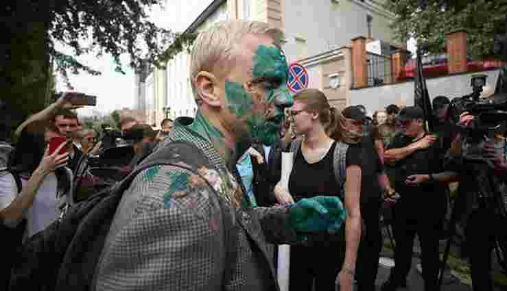 На пікеті проти Назара Холодницького активістів закидали тортами та облили зеленкою