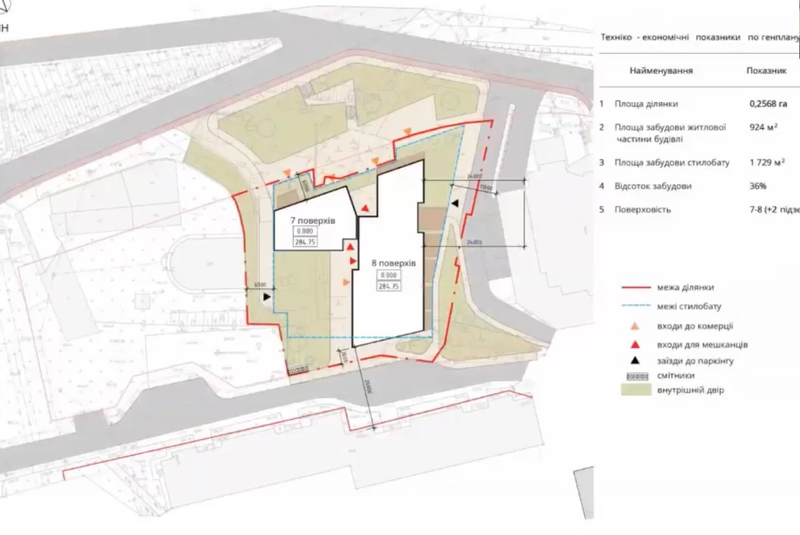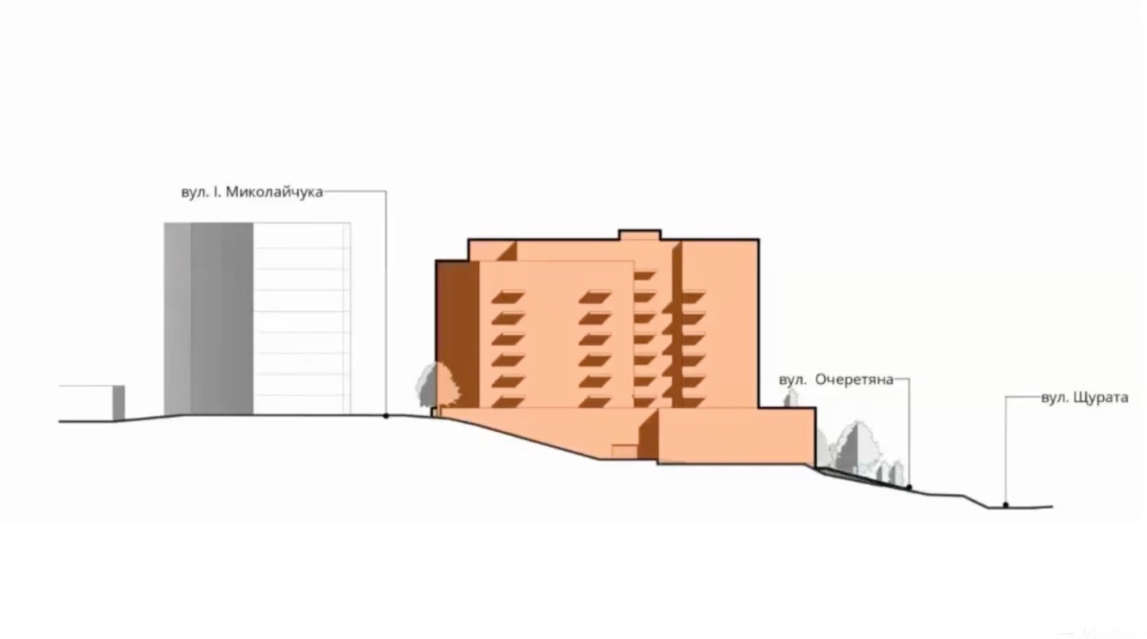 Йдеться про забудову ділянки на вул. Очеретяній, 31б, неподалік лікарні Святого Пантелеймона. На цій ділянці збудують багатоквартирний житловий комплекс змінної поверховості із комерцією на перших поверхах. Під усім комплексом розташують двоповерховий паркінг.