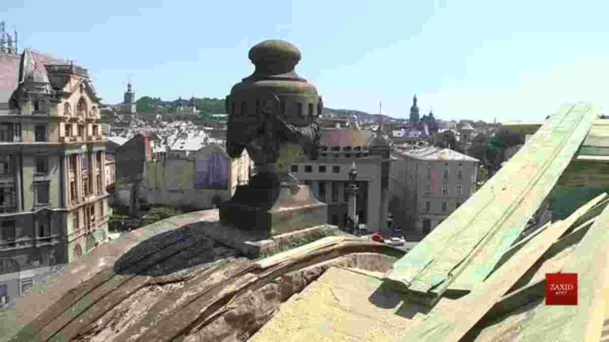 Цинкове покриття та декоративні елементи стали надто крихкими і можуть просто розсипатись. Ремонт даху пам’ятки архітектури почався у квітні. За цей час тут замінили металеву покрівлю та балки, на яких вона трималась.