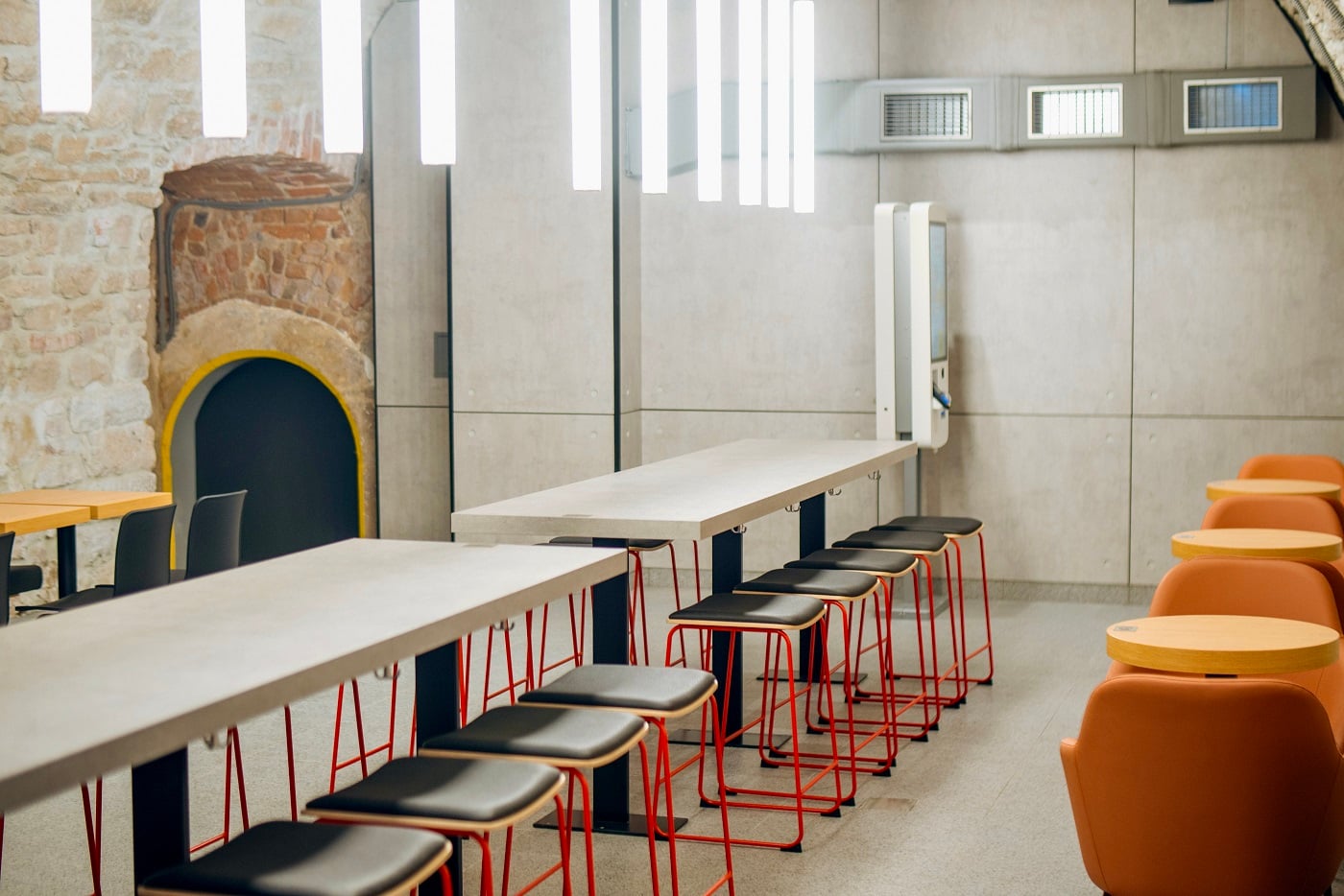 Заклад розташований у центрі міста поруч із ратушею. Інтер’єр враховує історичний та архітектурний контекст локації.