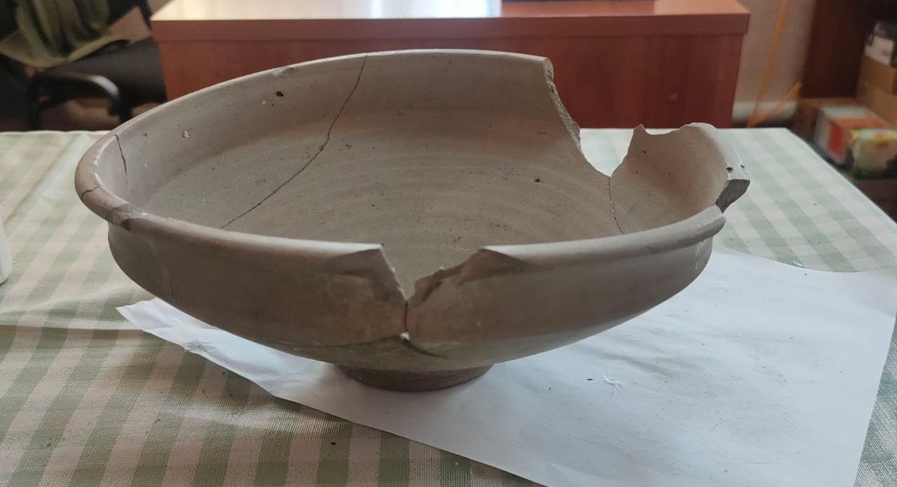 Як розповіли у Центрі археології, серед знахідок є кілька людських кісток та три посудини: маленький опуклобокий сірий горщик з шамотом, розвал сіроглиняної тонкостінної тарілки та рідкісна, велика чорнолощена «тривуха» ваза. Сіра та чорна кераміка створена на гончарному колі.
