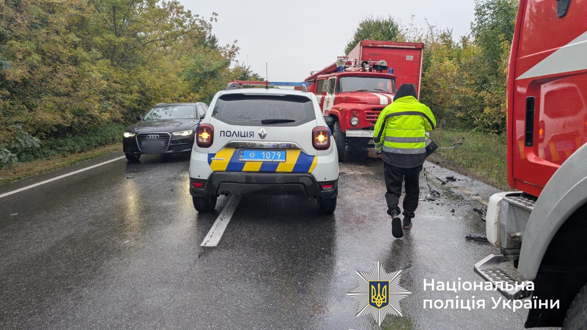 Наразі поліція працює на місці ДТП та встановлює усі обставини аварії.