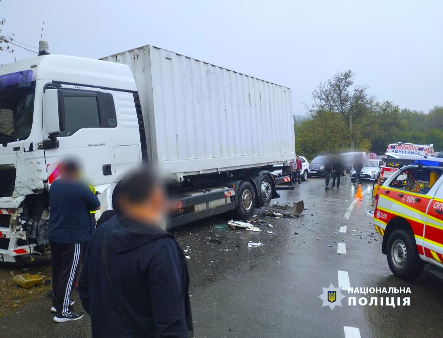 «На місце одразу були скеровані слідчо-оперативна група, слідчі, спеціалісти-криміналісти Слідчого управління ГУНП в Івано-Франківській області та всі відповідні служби. Попередньо встановлено, що відбулося зіткнення між вантажним автомобілем MAN та автомобілем Opel Vivaro», – інформують правоохоронці.