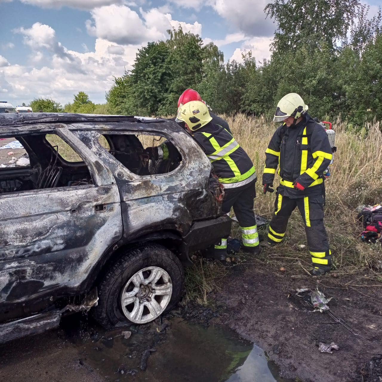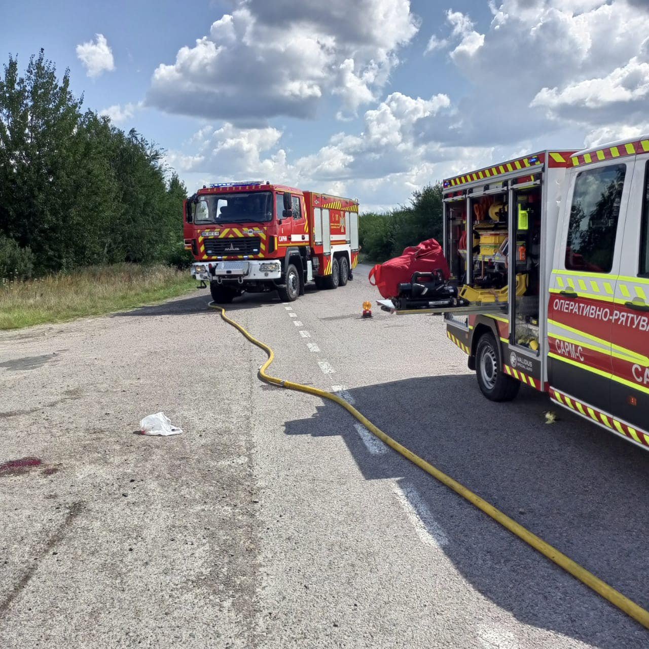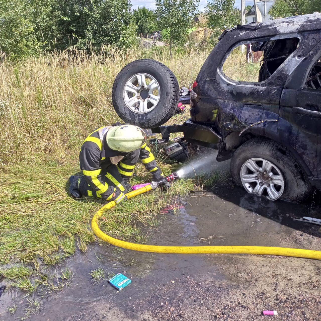 «39-річна водійка автомобіля Landmark, жителька Київщини, допустила перекидання транспортного засобу, внаслідок чого сталося подальше загоряння позашляховика. Пасажирів із авто викинуло на дорогу, а кермувальниця зуміла самотужки вибратися із салону», – йдеться у повідомленні.