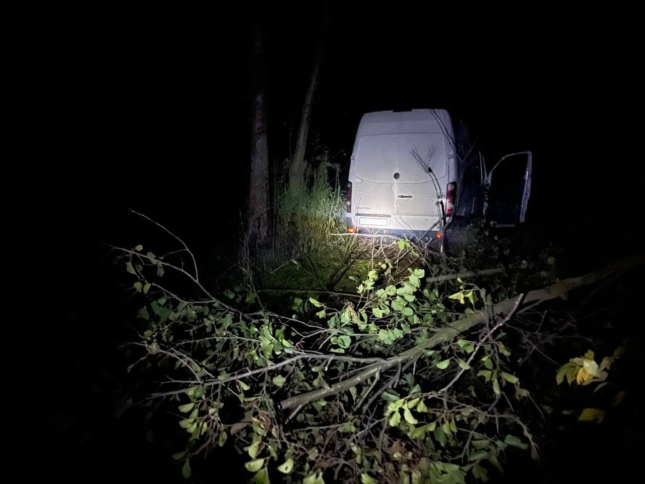 Як повідомила прес-служба поліції Рівненщини, інцидент стався близько 02:00 у понеділок, 16 жовтня, коли в області тривала коменданська година. У селі Злазне Головинської громади патрульні помітили мікроавтобус Volkswagen Crafter, водій якого підозріло маневрував проїзною частиною.