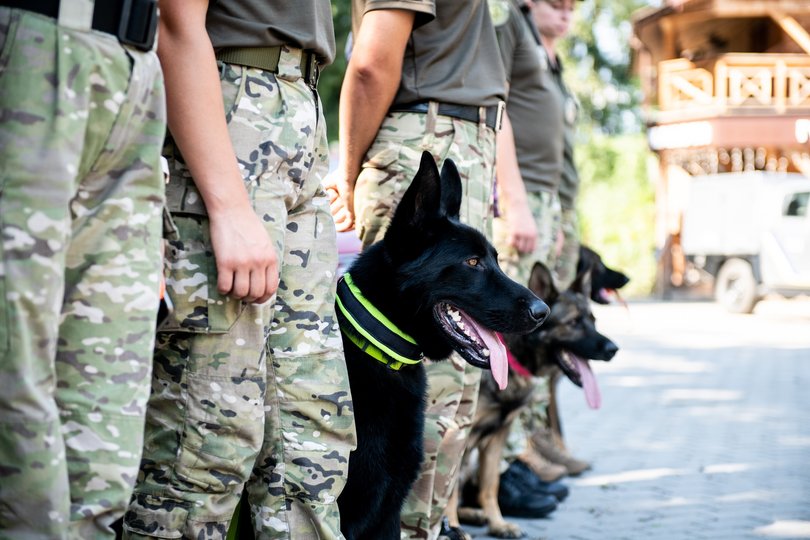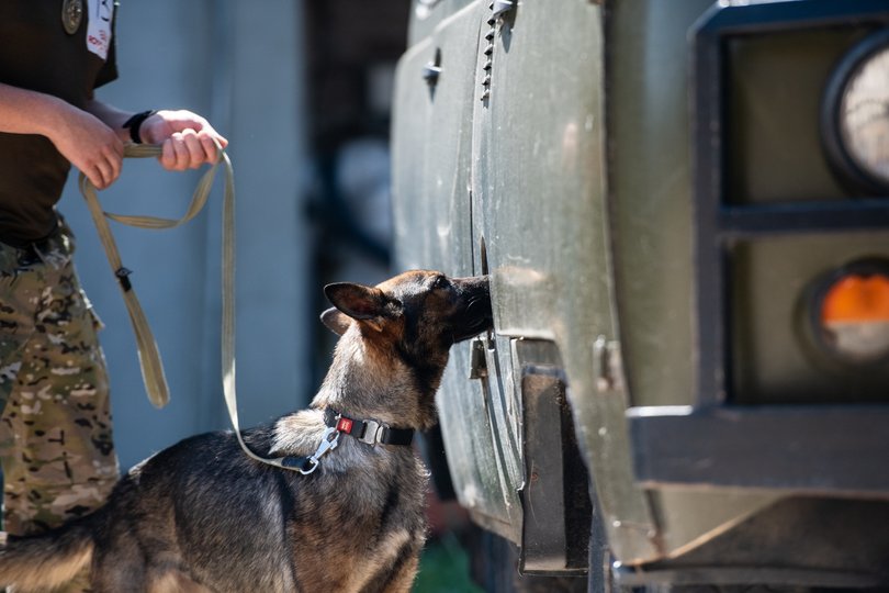 На Рівненщині відбулися змагання службових собак-детекторів з різних правоохоронних підрозділів. Службові пси змагались у тому, хто швидше знайде заховану вибухівку. Переможцем змагань став пес поліцейської-кінологині з Ірпеня.