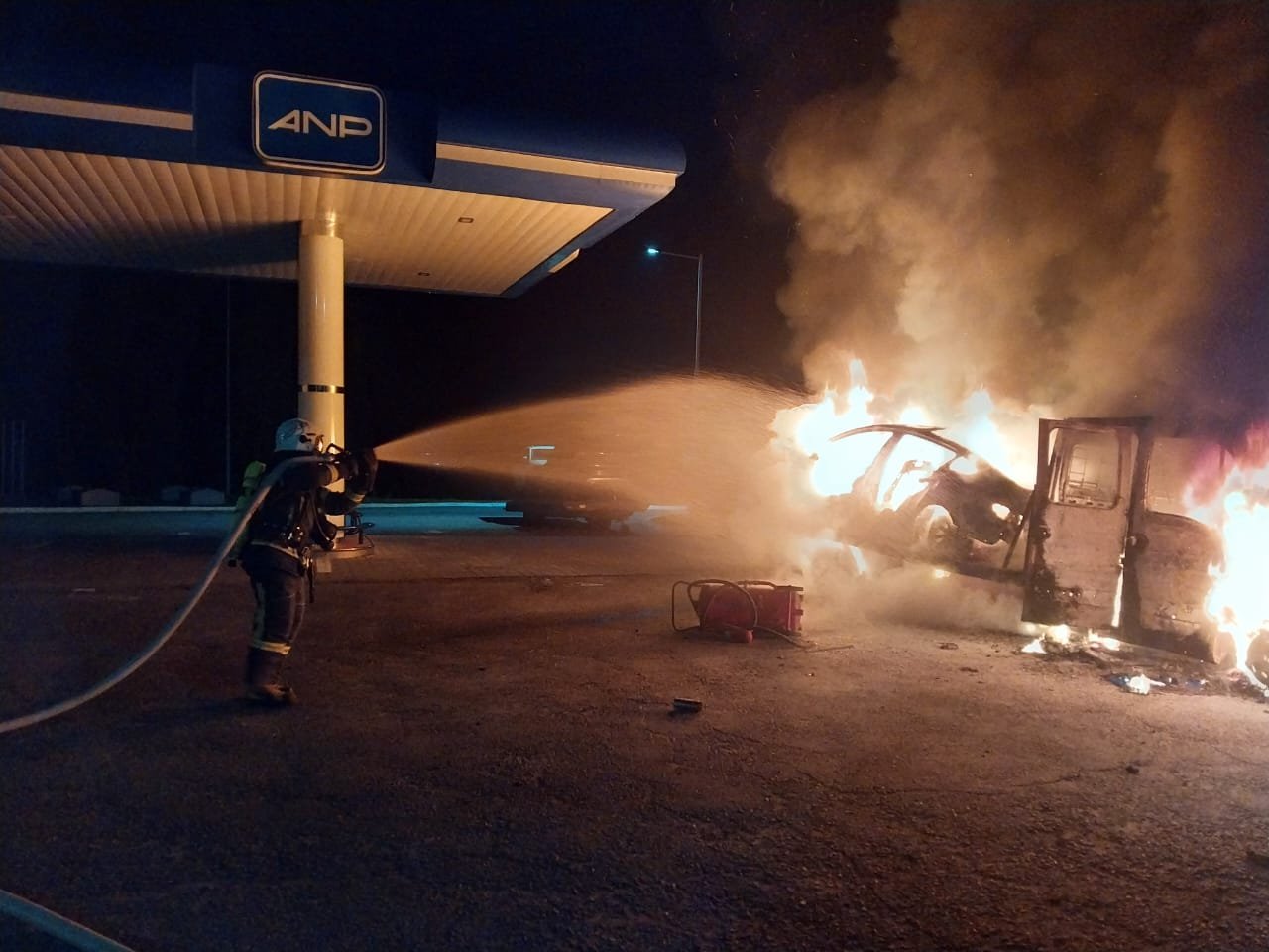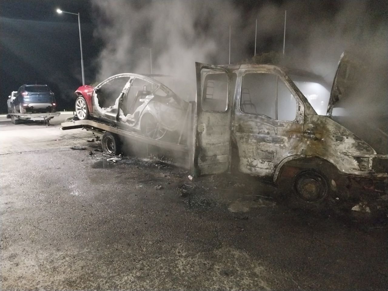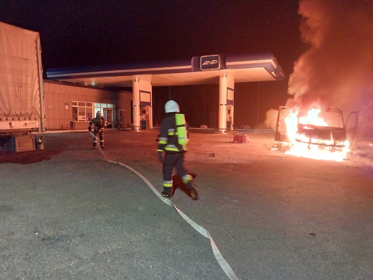 На Рівненщині вночі сталась пожежа на одній з АЗС, внаслідок якої згоріли два автомобілі – легковик Tesla та автовоз Iveko. Також під час пожежі опіки 15% тіла отримав 40-річний водій, його госпіталізували. Через що на заправці сталось займання, наразі невідомо, це з'ясовують фахівці.