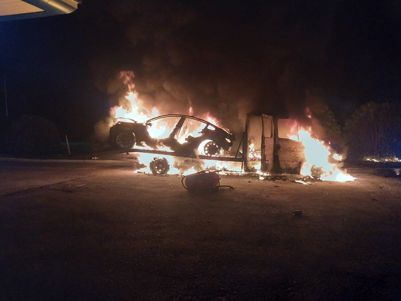На Рівненщині внаслідок пожежі на заправці згоріли Tesla і автовоз