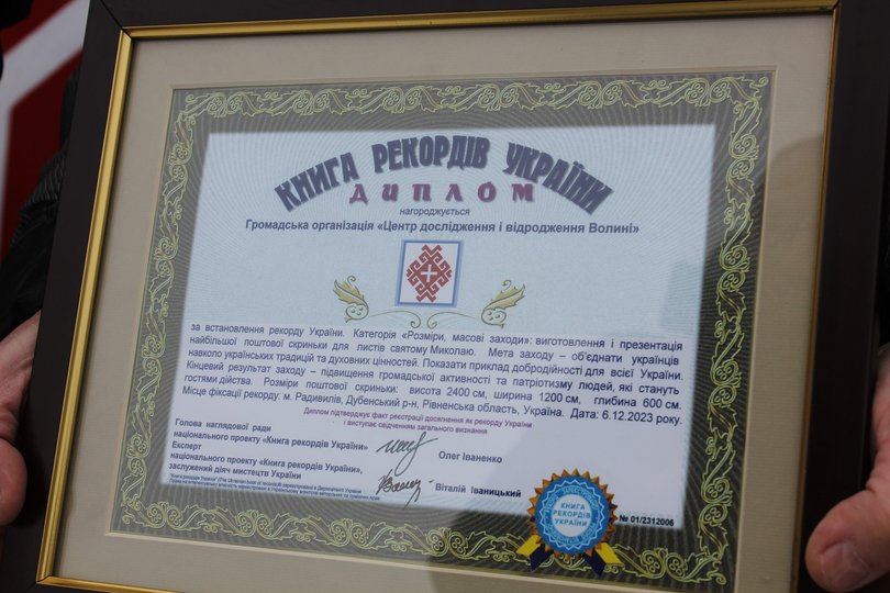 Як повідомила прес-служба Радивилівської міськради, рекорд зафіксували у середу, 6 грудня. Скриньку встановили на території місцевого етнопарку «Ладомирія», де наразі діє резиденція святого Миколая.