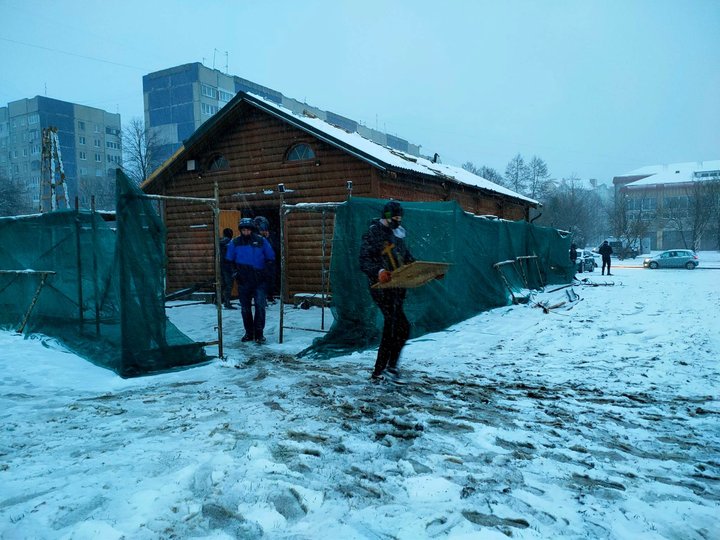 На Сихові почали демонтаж самовільної деревʼяної церкви УПЦ МП