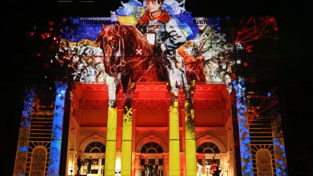 Медійно-драматичне дійство «Момент і Чин, або Великі Роковини» відбулося під музичний супровід Ukrainian Festival Orchestra. Текст начитав письменник Юрій Андрухович. А над проектом працювала спеціальна група на чолі з митцями театру Курбаса.
