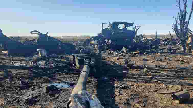 На опублікованих фото можна розгледіти вщент спалені танки та вантажні автомобілі «Урал» та КамАЗ.