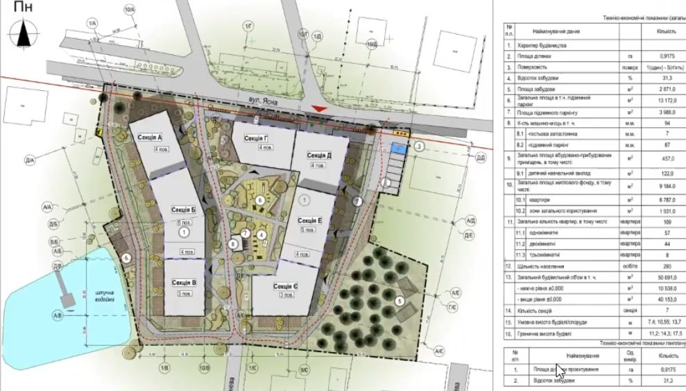 Йдеться про забудову території колишнього дитячого табору «Вогник» на вул. Ясній, 49 загальною площею майже 0,9 га. Ділянка перебуває в приватній власності Каріни Гаталяк та Наталії Сліпченко. На місці табору планують збудувати житловий комплекс на 109 квартир висотністю три, чотири і п’ять поверхів. На першому поверсі планують облаштувати приватний дитсадок і магазини. Під усім ЖК облаштують підземний паркінг на 87 місць. Крім цього, між вул. Ясною і вул. Яблуневою прокладуть нову вулицю.