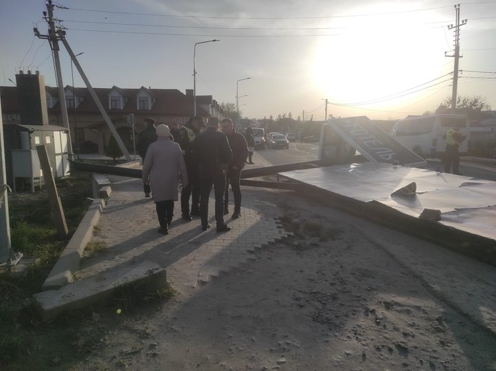 На Тернопільщині через сильний вітер рекламний щит впав на автомобіль