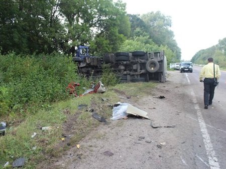 Як повідомляє УНІАН, водій вантажівки-автоцистерни «Вольво» допустив зіткнення з автомобілем «Фіат-Дукато» та перекинувся. Водій молоковоза загинув на місці події, також загинули водій «Фіата» і його пасажир. Ще одного пасажира «Фіата» госпіталізували з важкими травмами.