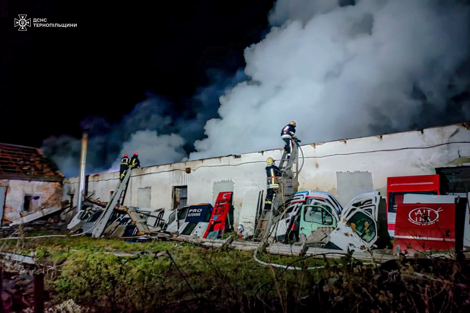 «Полум’я пошкодило дах і перекриття будівлі, повністю знищило один легковий автомобіль, навантажувач та велику кількість автомобільних деталей. На боротьбу з вогнем прибули 5 одиниць техніки та 22 рятувальники», – повідомили в ДСНС Тернопільщини у середу, 4 грудня.