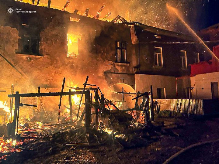 На Тернопільщині вночі виникла масштабна пожежа двохповерхового житлового будинку