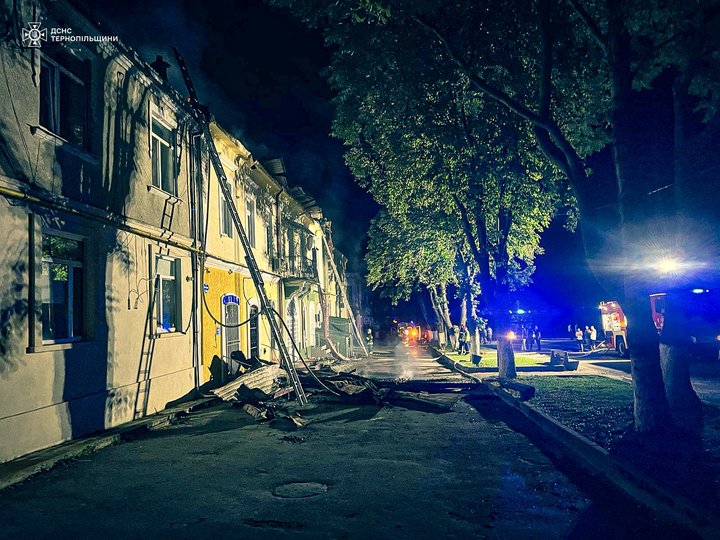 На Тернопільщині вночі виникла масштабна пожежа двохповерхового житлового будинку. Загоряння трапилося в центрі міста Заліщики. Очевидці стверджують, що пожежа розпочалася від вибуху в гаражі. Полум’я перекинулося на перший поверх, а потім поширилося на другий. Щоб врятувати людей, рятувальники залучали спецтехніку.