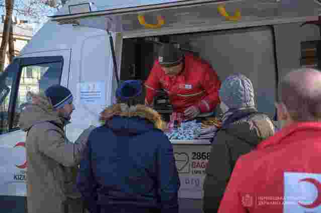 «У Чернівцях на Соборній площі розгорнули польову кухню. Тут гуманітарна організація «Турецький червоний півмісяць» безкоштовно годує переселенців, які наразі проживають у Чернівецькій області. У меню – перші страви, гарячі напої, гарніри тощо. Працюватиме їдальня просто неба до 18:00», – йдеться в повідомленні адміністрації.
