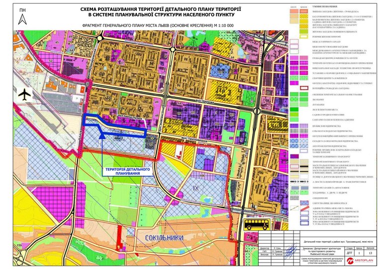 Проєкт ДПТ охоплює територію 13,8 га, обмежену вул. Трускавецькою, вул. Кульпарківською та межею міста зі сторони Сокільників. Нині тут розташований гаражний кооператив «Автофортеця», відкрита автостоянка, СТО та вільні від забудови ділянки. Гаражного кооперативу та СТО зміни детального плану не стосуються.