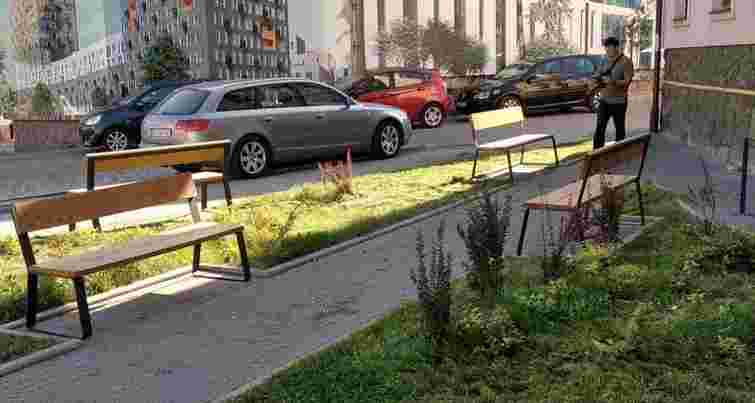 На вул. Хмельницького у Львові встановили лавки та велопарковки