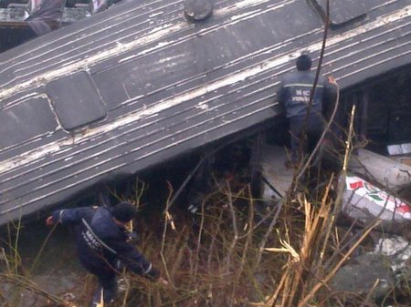 Як уточнили Мукачево.net в УДАІ УМВС України в Закарпатській області, рейсовий двоповерховий автобус марки «Вольво» сполученням Київ-Хуст з 8-метрової висоти з’їхав у річку Ріка.