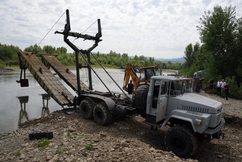 У вівторок, 25 липня, у прес-службі ДСНС повідомили, що через річку Тересву встановлюють тимчасовий 40-метровий міст. Важка механізована переправа замінить міст на час його ремонту. Міст ТММ-3М1 призначений для наведення переходів через нерівності рельєфу та може витримати техніку вагою до 60 тонн.