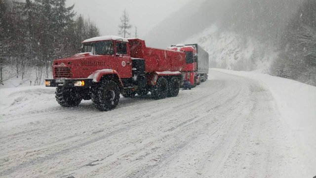 Також у ДСНС заявили, що через сильний снігопад залишається чинним тимчасове обмеження руху великовагових транспортних засобів на дорозі державного значення М-06 Київ-Чоп (на відтинку від Латірського перевалу до м. Свалява). У Львівській області з 15:45 тимчасово обмежили рух великовагових транспортних засобів на дорозі М-06 Київ-Чоп (на відтинку від м. Стрий – до межі із Закарпатською областю).