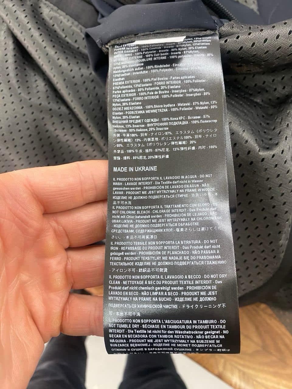 За його словами, приховано виготовляли зимові лижні куртки італійського бренду Vist із символікою держави-агресора для національної збірної РФ з лижного спорту, замовником котрої є організація «RUSSIA SKI TEAM». Під час обшуків знайдено 150 готових курток.