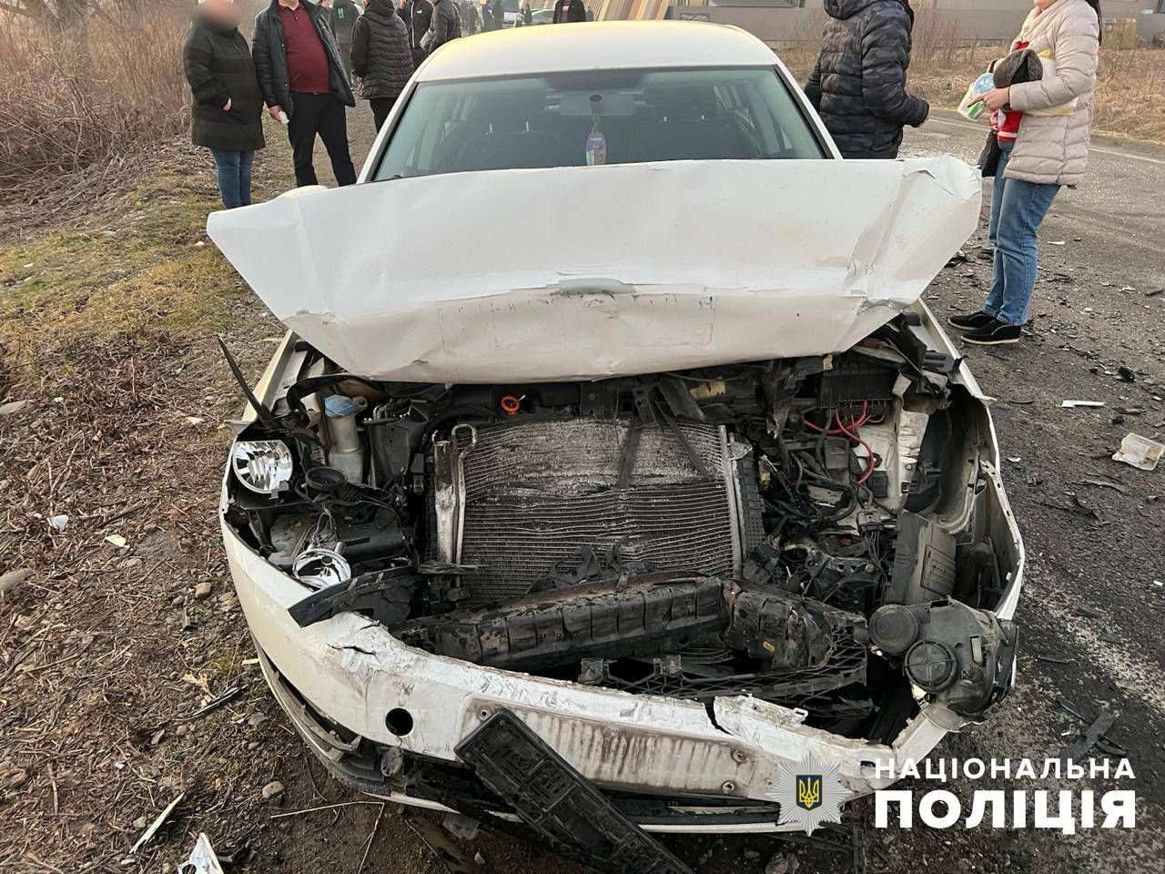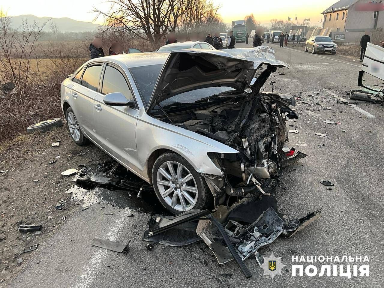 Як повідомила Нацполіція Закарпаття, 5 березня близько 17:30 до поліції надійшло повідомлення про аварію з потерпілими на автодорозі сполученням «Мукачево-Хуст-Рахів» в межах Тячівського району. Водій автомобіля Audi при здійсненні маневру обгону виїхав на зустрічну смугу руху, де зіткнувся з авто Volkswagen Caddy. Від удару Audi відкинуло в ще одне авто – Volkswagen Passat.
